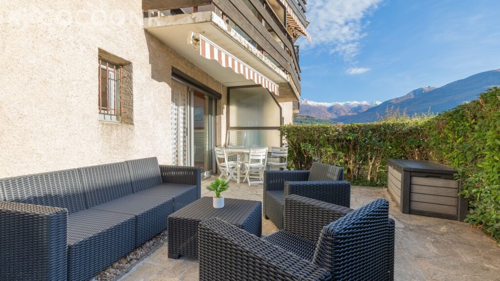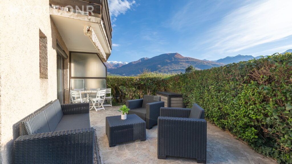 – Une terrasse de 15 m², exposée sud ouest, avec vue sur les montagnes et mobilier pour profiter des beaux jours